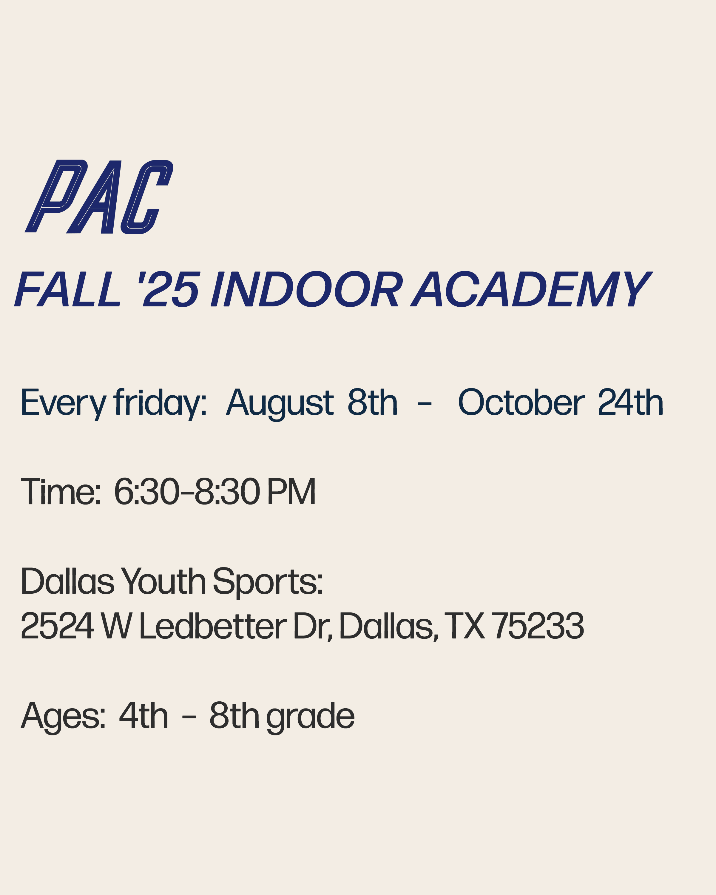 Fall ‘25 Indoor Training Academy Info